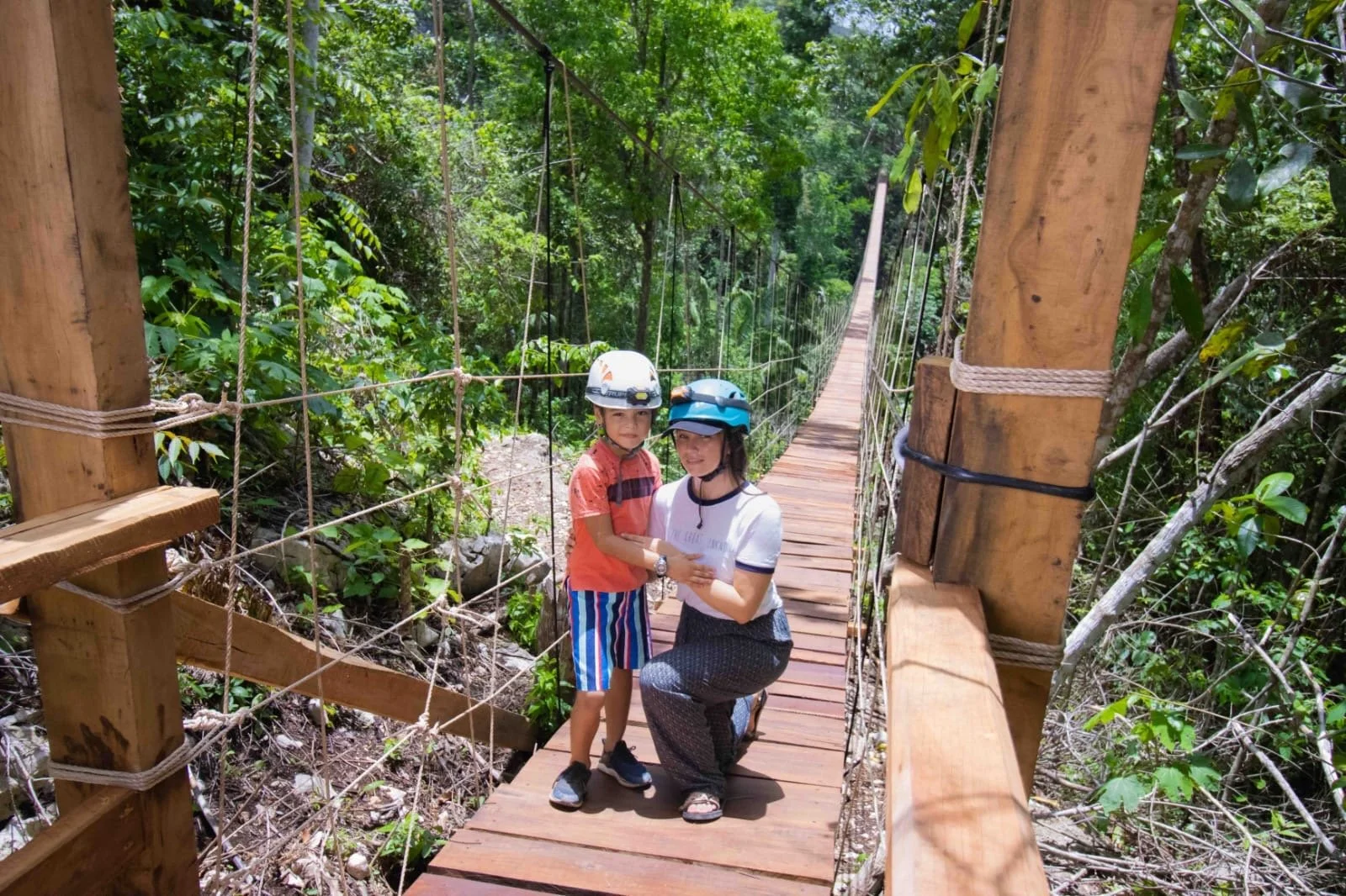- Unique encounters: Zip through a cave, walk on a 780 ft long hanging bridge, and float through a stunning underground river.